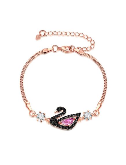Браслет Лебедь черный с белыми камнями Цвет золото Арт. Б-82