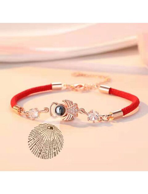 Браслет-проектор красный Ангел с черным камнем Цвет золото Арт. Б-46