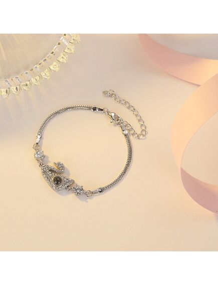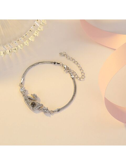 Браслет - проектор Лебедь с белыми камнями Цвет серебро Арт. Б-81