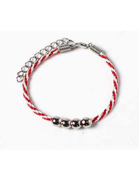 Браслет шнурок Красно-белый + 4 бусины Арт. Б-06
