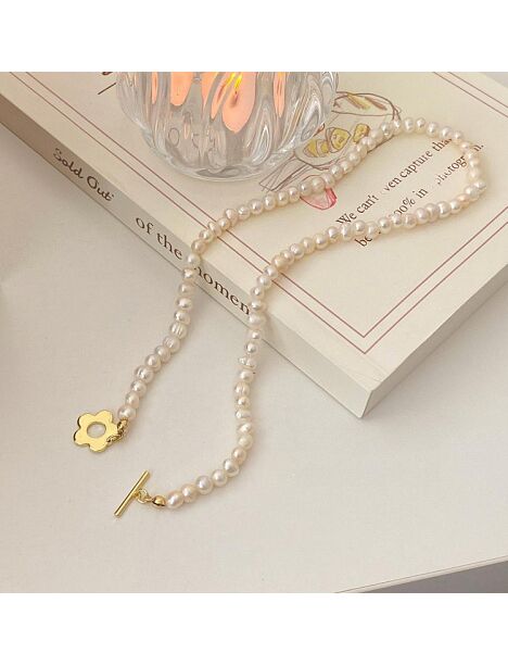 Колье с застежкой цветочком Цвет белый/золото Арт. К-16