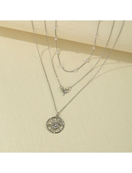Колье Солнце с жемчугом Цвет серебро Арт. К-34