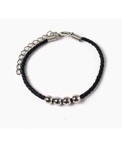 Браслет шнурок Черный + 4 бусиныДлина 18,5см+5см