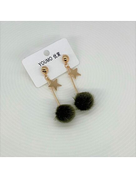 Серьги Шарики пушистые со звездочкой Цвет зеленый Арт. С-04