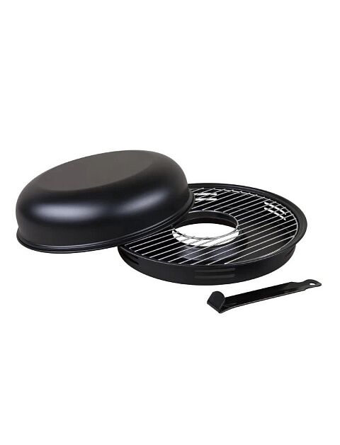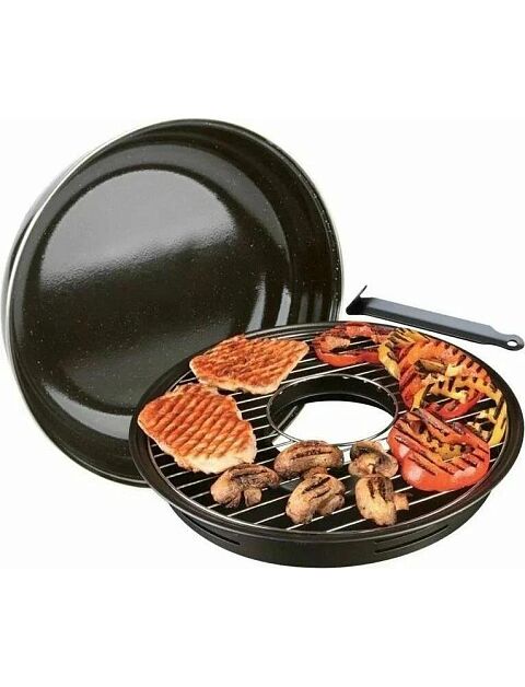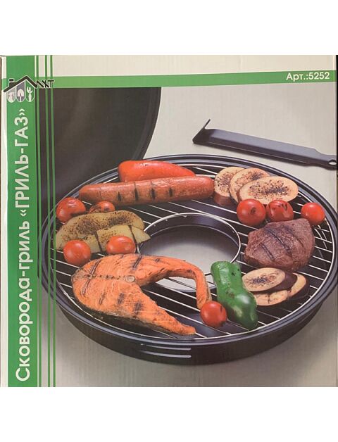 Сковорода гриль-газ является хорошей альтернативой мангала. Термическая обработка проходит по тому же принципу, что и при использовании мангала с углями. Продукты приготовленные на сковороде-гриль проходят термическую обработку по принципу той, которая происходит при приготовлении продуктов на традиционном барбекю с углями , мангале или в духовке. Принцип действия тот же, конвекция горячего воздуха под крышкой. Только в духовке конвекцию обеспечивает работа вентилятора, а в ГРИЛЬ-ГАЗ это происходит естественным путем за счет небольшого объема сковородки. При этом отсутствует прямой контакт продукта с нагреваемой поверхностью. Продукт готовится без добавления масла. Мясо, курица, рыба, овощи запекаются, сохраняя вкус, сочность и приобретая аромат блюда приготовленного на мангале.Диаметр крышки-сковороды-31см