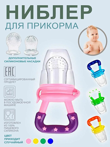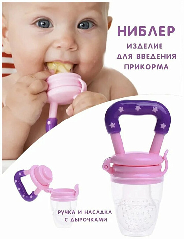 Это простой , гигиенически безопасный прибор, с его помощью малыш учится жевать кусочки пищи. Мама при этом может быть совершенно спокойна. Жуя фрукты и овощи через специальное ситечко, малыш никогда не подавится, а надежное крепление ниблера не позволит ребенку вытащить содержимое сеточки наружу. Его используют при переходе от грудного вскармливания к продуктам прикорма, когда возникает необходимость обучать ребенка правильно жевать твердую пищу.