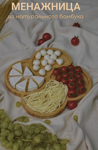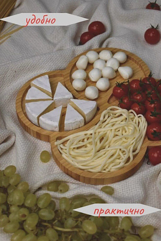Менажница для сервировки дерево - ПОЛУКРУГ 4 СЕКЦИЙ