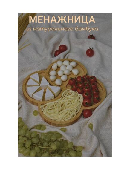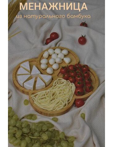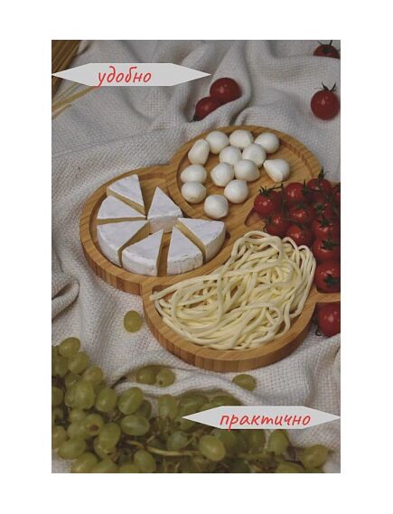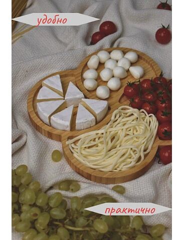 Менажница для сервировки дерево - ПОЛУКРУГ 4 СЕКЦИЙ