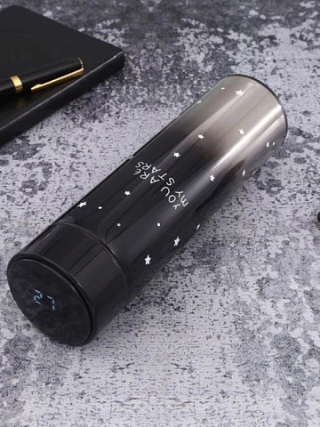 Термос You are my stars показывает насколько напитки горячие! Уникальная особенность термоса - это сенсорный индикатор температуры, расположенный в крышке. Чтобы узнать температуру внутри термоса, достаточно прикоснуться к поверхности крышки.Cтильный и умный вакуумный термос на каждый день. Он подходит как для горячих, так и для холодных напитков. В крышке термоса имеется датчик температуры, с ним Вы всегда будете знать температуру жидкости в Вашем термосе, а также сенсорный дисплей для управления этой функцией. Внутренняя колба изготовлена из высококачественной стали 304, что делает термос устойчивым к коррозии. Чтобы увидеть температуру жидкости в термосе, прикоснитесь к дисплею на крышке. Термометр работает от встроенного несъемного аккумулятора. Но будьте уверены, аккумулятор прослужить очень долго (1000 дней или 80000 нажатий), ведь в термосе встроен чип для оптимизации работы аккумулятора. Держит тепло до 10 часов. Держит тепло до 12 часов. Держит холод до 24 часов.