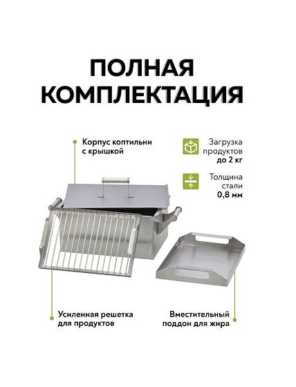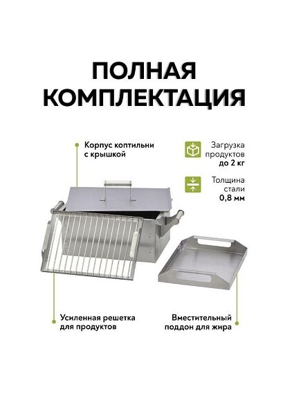 Любите домашние копчености? Готовьте их своими руками в коптильне горячего копчения, которая предназначена для использования на открытом огне. Пользуйтесь коптильней на даче, отдыхе на природе или в походе - готовьте потрясающе вкусное копченое мясо, птицу, рыбу, сало в любых условиях.Коптильня изготовлена из нержавеющей стали, которая устойчива к внешним воздействиям. Благодаря компактным размерам, коптильня не занимает много места при хранении, ее удобно транспортировать в багажнике легкового автомобиля.