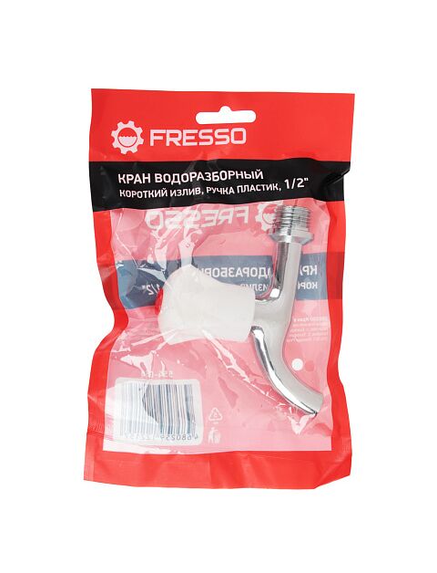 Обычный водоразборный кран FRESSO устанавливают, когда неудобно или невозможно установить смеситель. Он подходит для ванных, домашних и общественных туалетов. Кран вентильный с пластиковой ручкой. Размер соединения 1/2 - подходит для труб диаметром 20 мм. Покрытие крана - хром. Кран с коротким изливом.