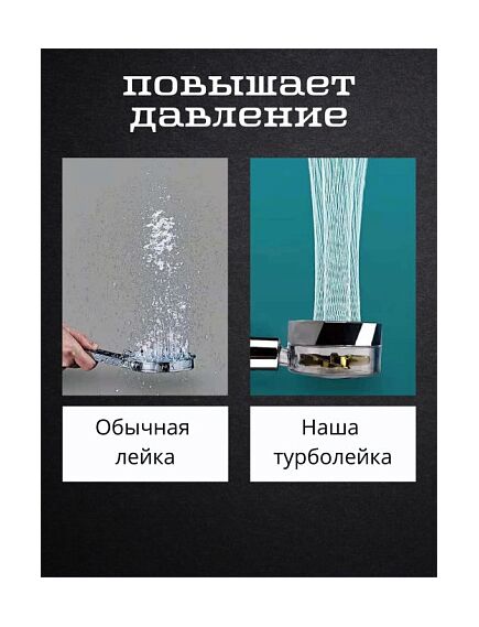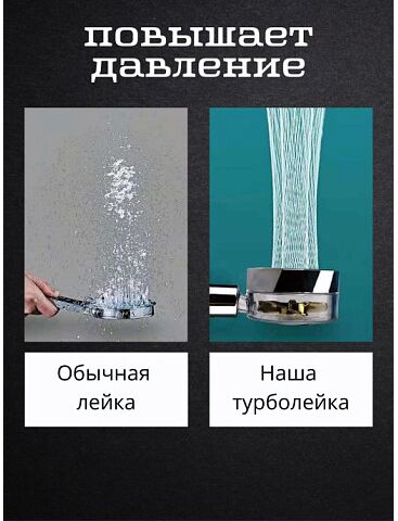 Насадка для душа ТУРБОЛЕЙКА С ПРОПЕЛЛЕРОМ благодаря высокотехнологичному встроенному вентилятору обладает эффектом повышения давления и увеличивает напор воды. Решетка металлическая из нержавеющей стали создающая мелкодисперсную струю воды со СПА эффектом обеспечит экономию воды до 30%. Разборная конструкция для легкой очистки.Стандартный размер подходит ко всем видам смесителей.