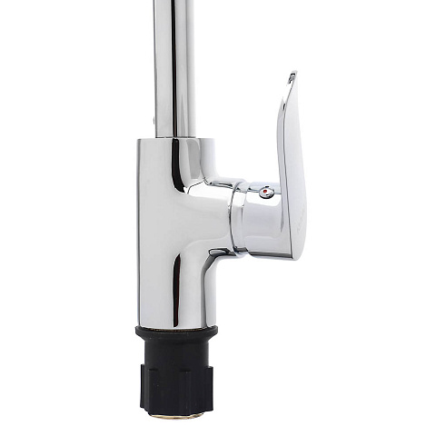 Однорычажный смеситель для кухни позволяет менять интенсивность потока воды и ее температуру легким касанием одной руки. Изделие сделано из цинкового сплава и покрыто хромом, поэтому обладает повышенной устойчивостью к ржавчине и известняковому налету.