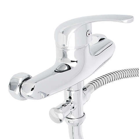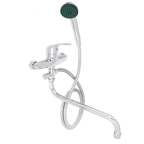 Смеситель для ванны с душем. Излив S-образной формы длиной 30 см - подходит для широких и угловых ванн. Однорычажный: удобно регулировать подачу воды одной рукой. Керамический картридж 35 мм: не шумит и не скрипит, регулирует воду при небольшом повороте. Дает достаточный напор, чтобы быстро наполнить ванну. Шланг душа в металлической оплетке. Смеситель из цинка: гарантийный срок 1 год. Подходит как временный и запасной смеситель. Цинковые смесители портятся при резких сменах температуры воды - чтобы сантехника прослужила дольше, меняйте температуру плавно.