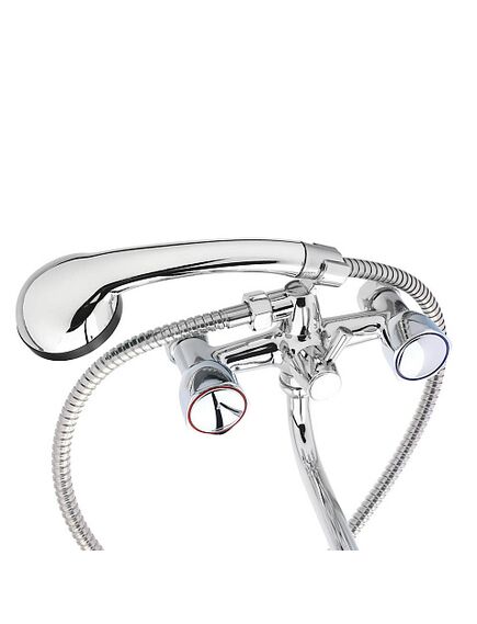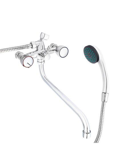 Смеситель для ванны с душем. Двухвентильный - удобно регулировать температуру и напор воды даже с закрытыми глазами. Керамическая кран-букса - открывает воду с полуоборота, не шумит, дает плавный ход вентилей. Используйте фильтр для воды, чтобы кран-букса прослужила дольше. Излив S-образной формы длиной 30 см - подходит для ванн любого размера, удобно набирать воду в тазы. Материал смесителя и излива - цинк: выдерживает постоянный контакт с водой. Лейка душа без переключения режимов - только основной режим подачи воды.