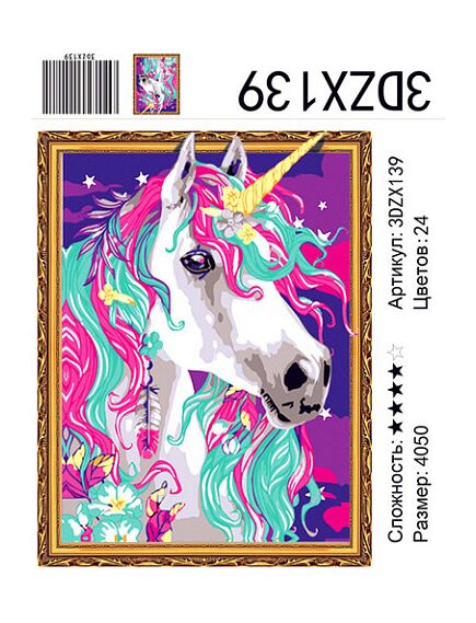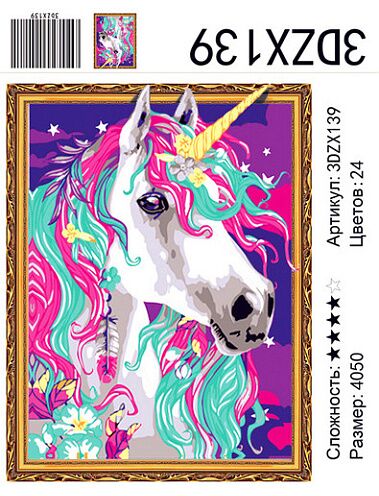 картина алмазная мозаика "Сказочный единорог", 40х50