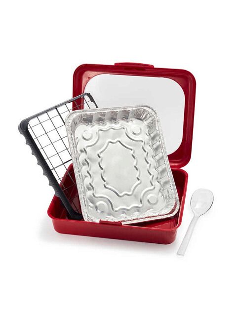 .Новинка «2 в 1» Fancy Panz включает съемный «Riser», который позволяет Fancy Panz работать с двумя размерами сковородок с фольгой, включает одну бонусную противень для выпечки фольги / лазаньи , без ложки.