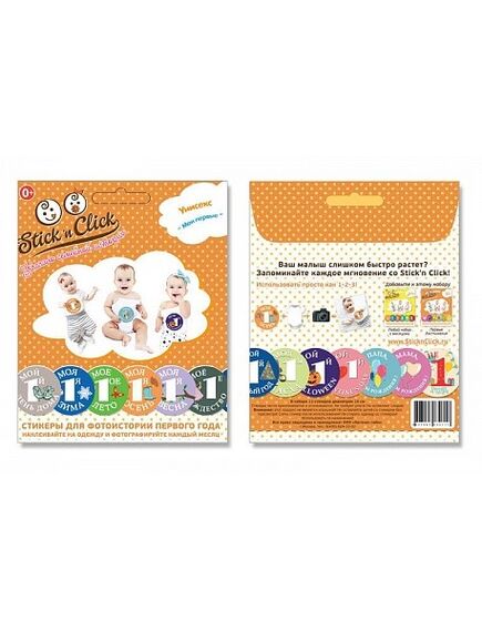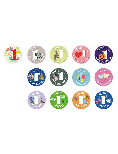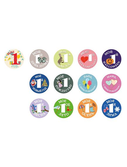 В наборе 13 оригинальных наклеек диаметром 10 см. на каждое первое событие в жизни крохи.