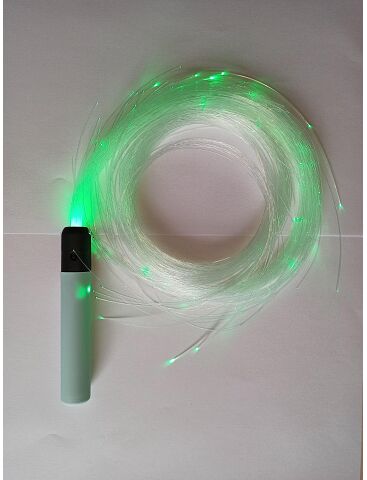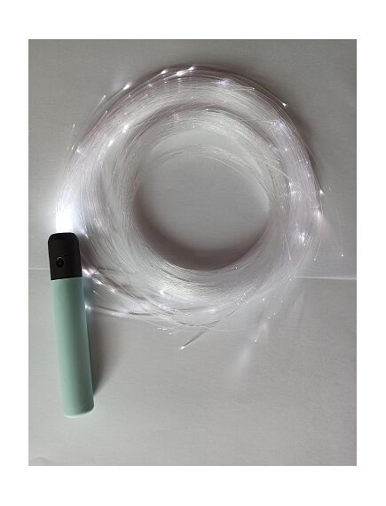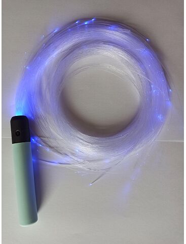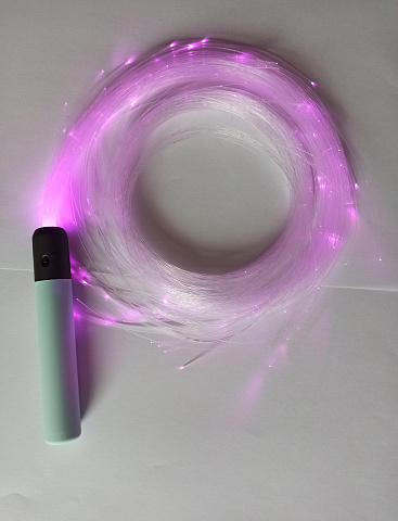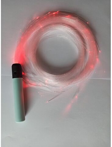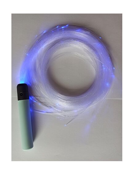 Хлыст свободно вращается вокруг своей оси благодаря встроенному в рукоятку подшипнику, а хаотически расположенные ответвления оптических волокон создают при движении неповторимую динамическую феерию. Питание осуществляется от литий-ионного аккумулятора.