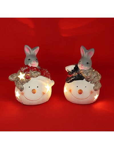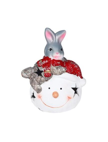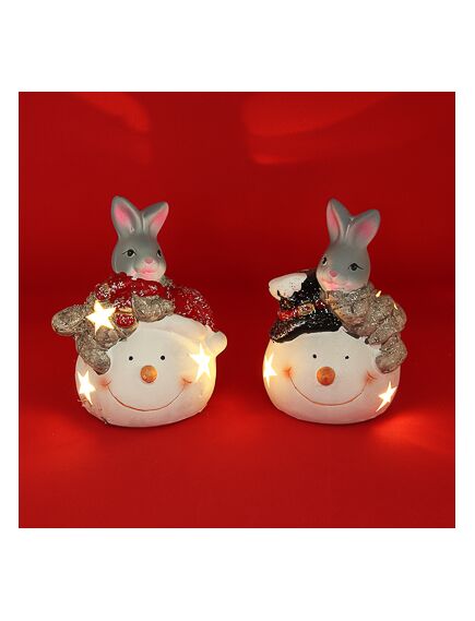 СНОУ БУМ Фигурка в виде кролика с подсветкой, керамика, 9,3x8,8x13,8 см, арт 1, 2 вида