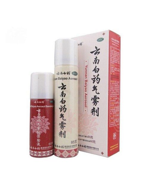 «Юнь Нань Бай Яо» - это две ёмкости с обезболивающим средством. Спрей из белого флакона – лечебная аэрозоль (50 мл) можно применять на открытые раны. Красная ёмкость (60 мл) содержит охлаждающий спрей с эффектом заморозки. Его применяют только на закрытые травмированные участки тела.