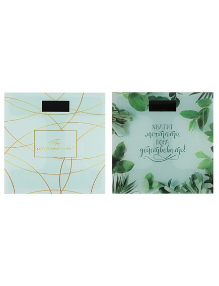 Весы напольные электронные 28х28 см Motivation с ЖК-дисплеем и встроенным термометром – это стильный прибор для взвешивания с высокой точностью измерений. Не занимает много места, имеет ненавязчивый дизайн в спокойной цветовой гамме с мотивирующей надписью. ЖК-дисплей отображает вес, уровень заряда и температуру воздуха в помещении. Благодаря специальным накладкам на ножках, весы не скользят по полу. Рассчитаны на максимальную нагрузку 180 кг. Работают от 2-х батареек ААА-типа.