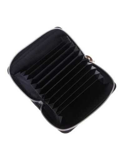 Держатель для карт в необычном исполнении – имеет 11 отделений для карт и визиток. Кардхолдер ЮL закрывается на молнию, что позволяет использовать его в том числе в качестве кошелька. Позволяет хранить большое количество карт и визиток. Может быть использован как визитница для домашнего хранения дисконтных карт. Помещается даже в небольшой дамской сумочке. Надежный замок и полностью закрывающаяся конструкция предохраняет карты от выпадения.