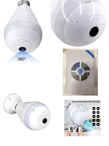 Беспроводная IP Wi-Fi камера-лампа видеонаблюдения представляет собой специальную светодиодную лампу со встроенной беспроводной web камерой, с объективом рыбий глаз с панорамным обзором в 360 градусов, которая обеспечивает высокое качество изображения в формате HD.