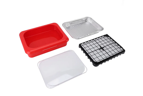 .Новинка «2 в 1» Fancy Panz включает съемный «Riser», который позволяет Fancy Panz работать с двумя размерами сковородок с фольгой, включает одну бонусную противень для выпечки фольги / лазаньи , без ложки.