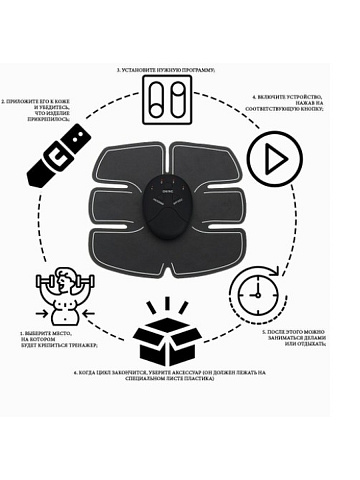 Привести свое тело в идеальную форму не прибегая к тренажерам можно с помощью миостимулятора. Электрический массажер Smart Fitness справится намного проще, чем вы могли представить. EMS trainer (электрический стимулятор мышц) изготовлен из высококачественных материалов. Миостимулятор для мышц абсолютно безопасен и эффективен. Стимулятор мышц поможет вам создать тело вашей мечты, даже не изнуряя себя тренировками. Просто закрепите электроды для миостимулятора на теле - и он будет работать без вашей помощи. Миостимулятор для живота имеет простой дизайн. Массажер для тела легкий в управлении. Компактный и портативный миостимулятор для пресса можно с легкостью взять с собой. Электростимулятор оснащен 15 уровнями интенсивности. Выполняя тренировки с миостимулятором для мышц EMS Trainer ежедневно, вы достигните желаемого результата.