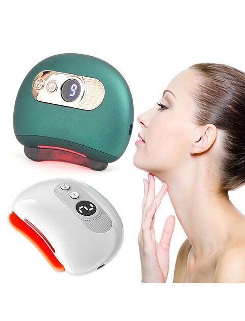 Аппараты с разными насадками, одна по форме напоминает нефритовый камень гуаша, вторая – массажную щетку. Процедуру массажа лучше начинать с зоны груди и декольте, потом шея, затем лицо, двигайтесь по массажным лимфодренажным линиям