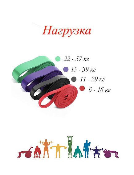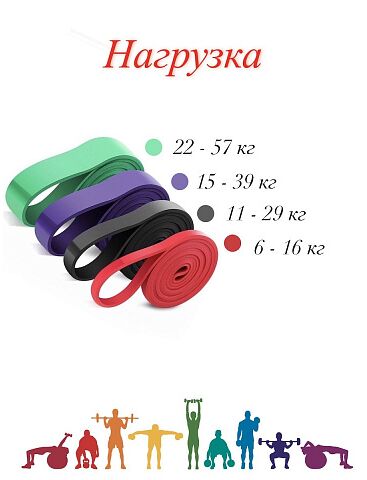 Набор фитнес петель – это универсальный тренажер для занятий в зале, домашних тренировок. Тренировочные фитнес петли для разных групп мышц. При растяжении нагрузка плавно увеличивается: чем сильнее растягивается петля, тем выше нагрузка. На каждой петле указан диапазон нагрузки. Сопротивление красной резинки 7-16 кг, черной -11-29 кг, фиолетовой - 16-38 кг, зеленой - 23-56 кг. Первое значение - нагрузка при начальном растяжении, второе - при максимальном.Эспандер ленточный поможет решить проблему нехватки времени на спорт зал. Всего за пол часа утром или вечером вы проработаете все группы мышц, увеличивая или снижая нагрузку на свое усмотрение. Резинки для йоги не занимают много места, в отличии от другого спортивного инвентаря, вы даже сможете взять их с собой в командировку или отпуск.