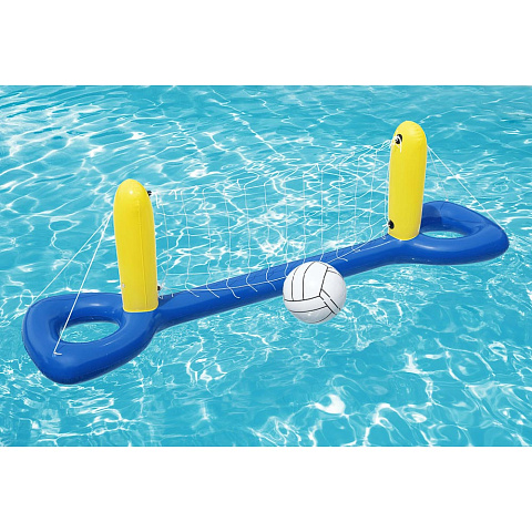 Надувной набор для волейбола BESTWAY: с ним играют на воде. В наборе сетка и мяч. Легко надуть насосом. Высота сетки 64 см: удобно играть детям от 3 лет. Подходит для водоемов со стоячей водой - бассейнов, озер, рек со слабым течением. Купите, чтобы весело проводить время на природе!