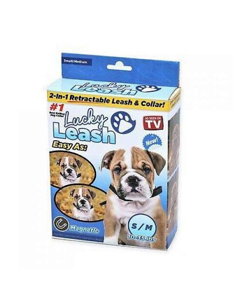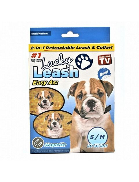 Сборы на выгул собаки должны быть очень быстрыми. Особенно это важно утром, когда питомцу крайне необходимо на улицу, а сонный хозяин никак не может собраться. Главное преимущество модели Lucky Leash – поводок встроен прямо в ошейник и вытягивается по принципу рулетки. Вам не придется искать по всему дому аксессуар.Изделие легко выносит большие нагрузки и рывки собаки, а также не перекручивается систематически при растяжении. Lucky Leash станет лучшим выбором для собак весом до 15 кг. Благодаря качественным материалам, изделие прослужит много лет и станет любимым аксессуаром для вашего питомца.