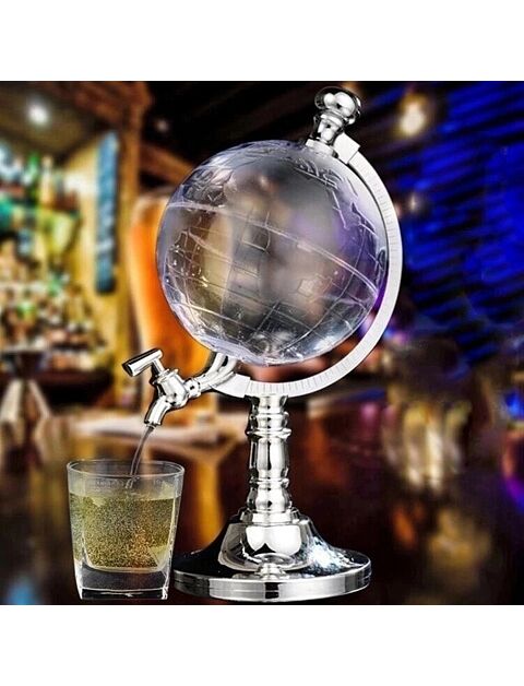 Диспенсер для напитков способен придать любой вечеринке или праздничному ужину класса, особенно если речь идет о таком оригинальном диспенсере.Емкость сделана в форме глобуса, включая характерную подставку. Напитки заливаются в диспенсер при помощи воронки, которая входит в комплект, и разливаются через специальный краник. Плотная крышка в верхней части диспенсера не позволяет напитку выдыхаться.