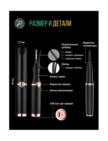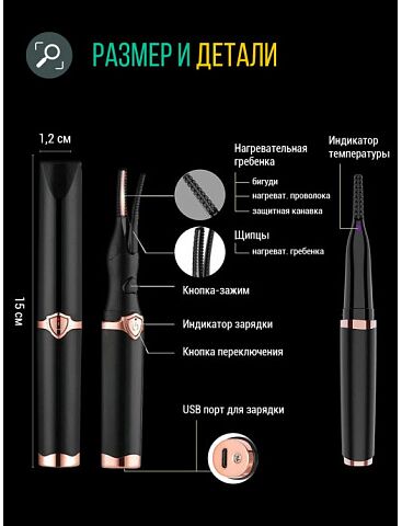 Быстрая естественная завивка: электрические щипцы для завивки ресниц нагреваются в течение 20 секунд после включения. Мгновенно получите идеальные изогнутые ресницы, которые сделают вас очаровательными. ИДЕАЛЬНЫЙ ПОДАРОК ДЛЯ ЖЕНЩИН: щипцы для завивки ресниц с подогревом - лучший подарок для Вас и ваших близких. Позвольте себе и друзьям заменить старые ручные щипцы для завивки и использовать современные электрические щипцы.Размеры: 15,5х2,4х2,3 см; - Вес прибора: 48 г.