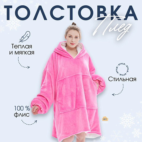 Розовая Толстовка плед с капюшоном Huggle Hoodie