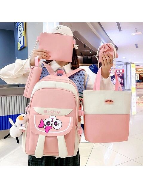 Рюкзак пудровый зайка Набор 5в1 Арт. Р01