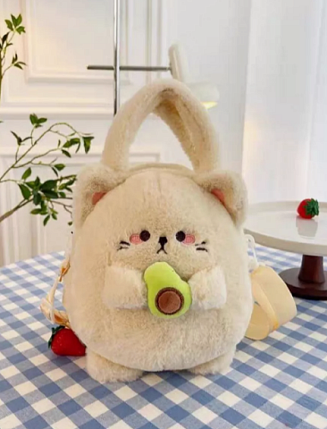 Сумочка Котик бежевый с авокадо 20 см