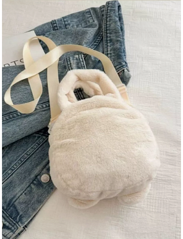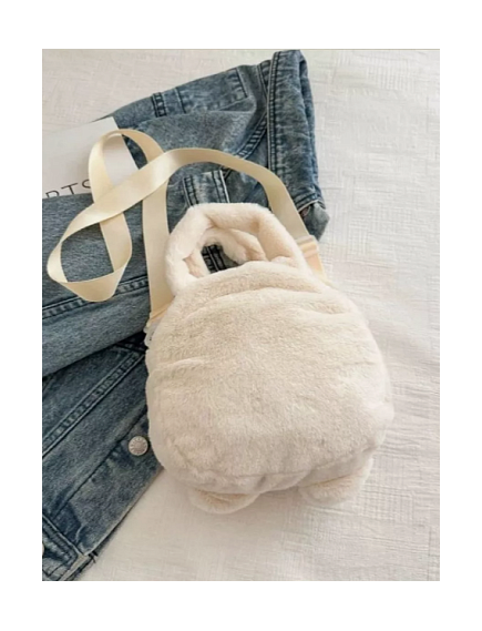 Сумочка плюшевая Котик бежевый с авокадо 20 см, ремешок в комплекте.