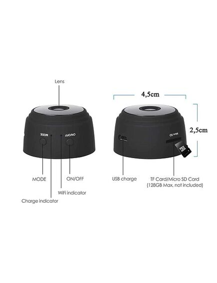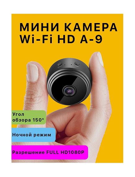 С установкой мини HD камеры с wifi A9 у вас не возникнет никаких проблем. Камера имеет магнитный корпус и может быть легко установлена на любую металлическую плоскость. Ночное видение и детектор движения А9 может снимать в условиях низкой освещенности в вашей комнате. Есть функция обнаружения движения, то есть, камера начнет работу, когда в помещении будут люди или животные. Поддержка приложения на Android/iOS Мини HD камера A9 связывается с мобильным устройством по WiFi и передает сигнал. Высокая автономность работы Встроенный аккумулятор мини HD камеры с wifi A9 позволяет ей проработать в режиме съемки более 2-х часов. Вы можете запитать устройство напрямую от электросети, через блок питания на 5 вольт или от стандартного powerbank.