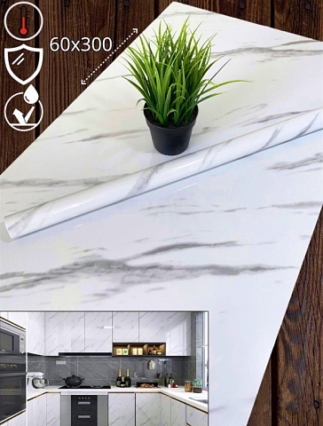 Самоклеящаяся пленка Белый мрамор 60смх3м Kitchen Sticker